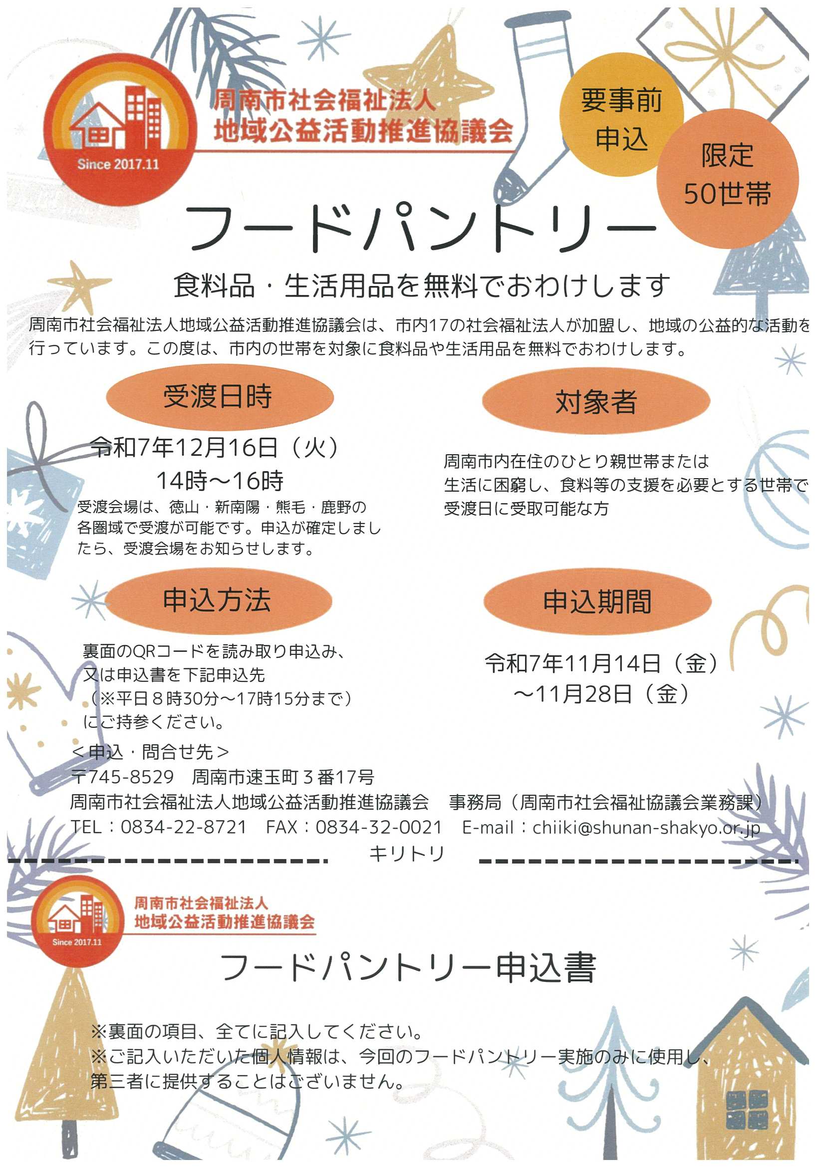 2025.10.27 お知らせ フードパントリー「申込受付募集」について 続きを見る 2025.10.09 お知らせ / 広報誌 / 特別養護老人ホームつづみ園 つづみ祭開催のお知らせ 続きを見る 2025.10.02 お知らせ 職員募集について 令和8年4月1日付け採用の職員を募集しています。 募集職種 : 看護職員 応募方法 : 採用試験申込書を持参又は郵送してください。 採用試験申込書はこちら ※持参・郵送先 745-0827 周南市瀬戸見町12番30号 社会福祉法人周南市社… 続きを見る 2025.08.12 お知らせ 周南市未来人材奨学金返還支援制度登録事業者になりました。(R7.7.31) 周南市未来人材奨学金返還支援制度登録事業者になりました。(R7.7.31) これは、要件を満たした方の奨学金の返還を補助する制度です。 周南市が最長5年間、返還額の2/3を補助することで、奨学金を返還しながら働く若者を経済的に支援し、市内の… 続きを見る 2023.04.01 お知らせ Webサイトをリニューアルしました。 弊社ホームページをリニューアルオープン致しました。 皆様に、より私たちことを知っていただけるよう、デザインや掲載情報及び構成を見直し生まれ変わりました。 これから様々な情報を発信していきますので、今後ともご愛顧の程、よろしくお願い申し上げま… 続きを見る